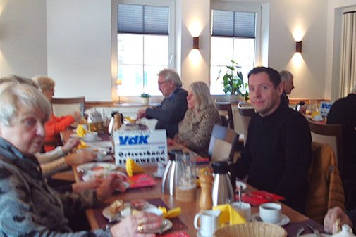 21 VdKlerinnen und VdKler waren Anfang Februar zum gemeinsamen Frühstück in Esterwegen zusammengekommen. Vorsitzender Ludger Eiskirch nutzte den feierlichen Rahmen, um Kassenprüfer Lukas Otten für 20 Jahre Ehrenamt im Sozialverband VdK zu ehren.